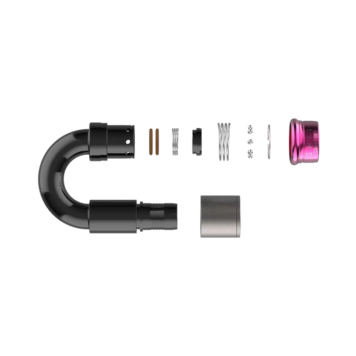 Dyme PRO/SPEC™ H-Type One-Piece Ultra Sport: Experience the ultimate flexibility and one-handed tool-free connection, with built in safety features including dual FLUOROK™ FKM O-rings sealing the barrel to the adapter, a secondary overlock channel to jam the pull ring, and a high visibility band to ensure your fitting is locked on at a glance.